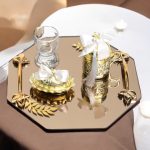 Damat Kahve Tepsisi: Şık tasarımı ve modern çizgileriyle özel günlerinizi daha anlamlı hale getiren sekizgen altın detaylı tepsi, her detayı özenle düşünülmüş bir estetik sunar.