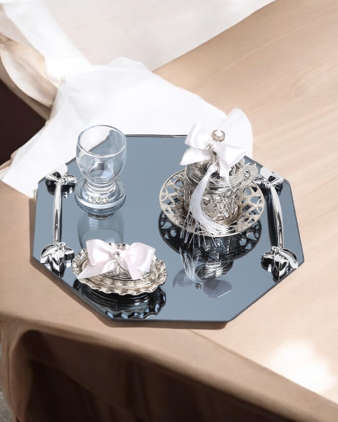 Kombin Önerisi: Bu zarif set, nişan tepsisi modelleri veya söz tepsisi süslemeleriyle (nişan tepsisi modelleri, söz tepsisi fiyatları) uyum içinde kullanılabilir. Organizasyonunuza uygun temalarla tamamlayarak benzersiz bir şıklık yaratabilirsiniz. Ayrıca, söz nişan tepsisi süsleme detayları ile hayalinizdeki dekorasyonu oluşturmanız mümkün.