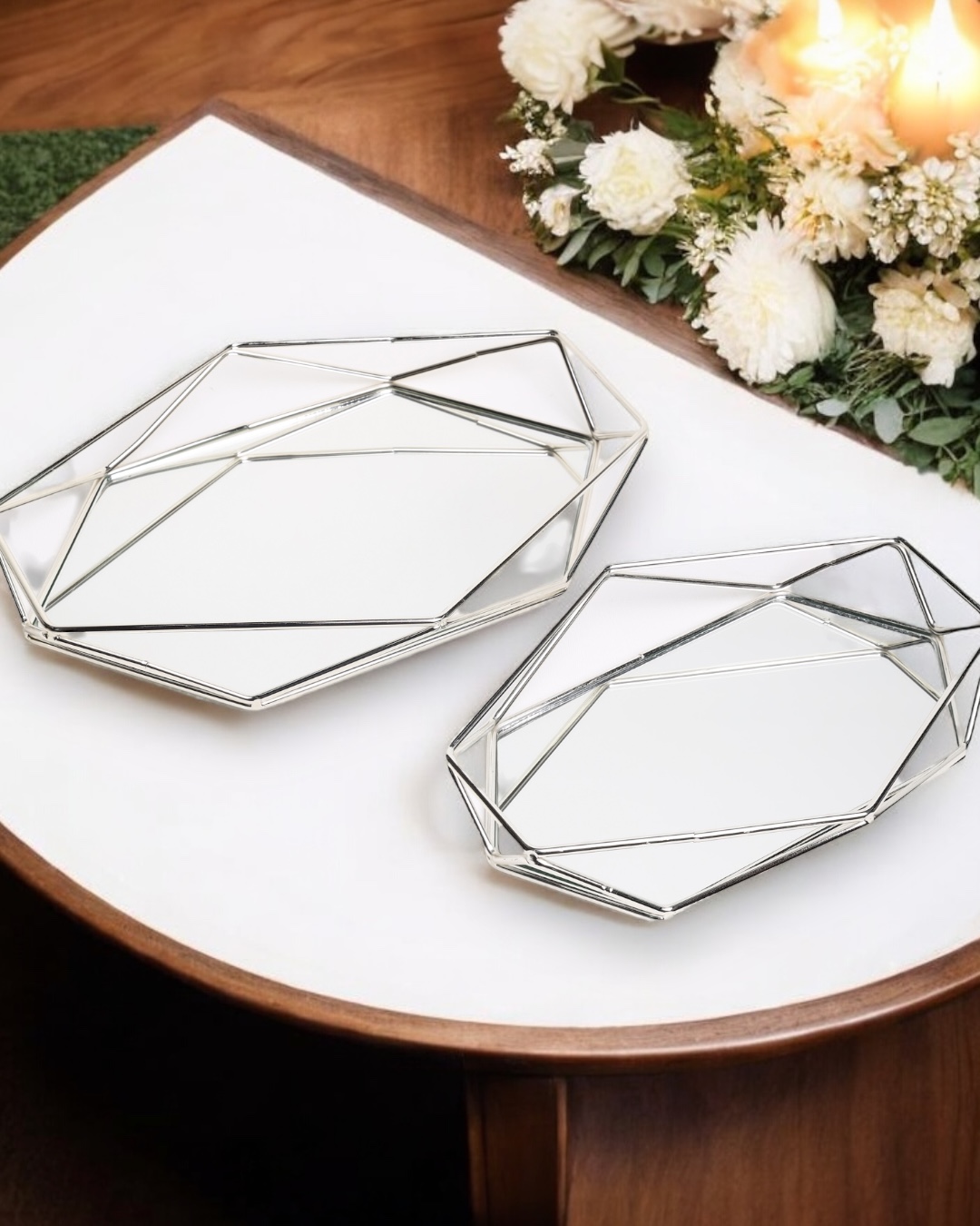Evinizdeki her köşeyi anlamlı bir şıklıkla buluşturacak Graceful Prizma Dekoratif Söz & Nişan Tepsisi ve Damat Kahve Fincan Tepsisi, sadece bir aksesuar değil; yaşam alanınızı dengeleyen, sofistike bir dokunuş. 33×29 cm ve 28×20 cm ölçülerindeki zarif tasarımıyla, bu özel ürün ev dekorasyonu aksesuarlarına yeni bir boyut katıyor.