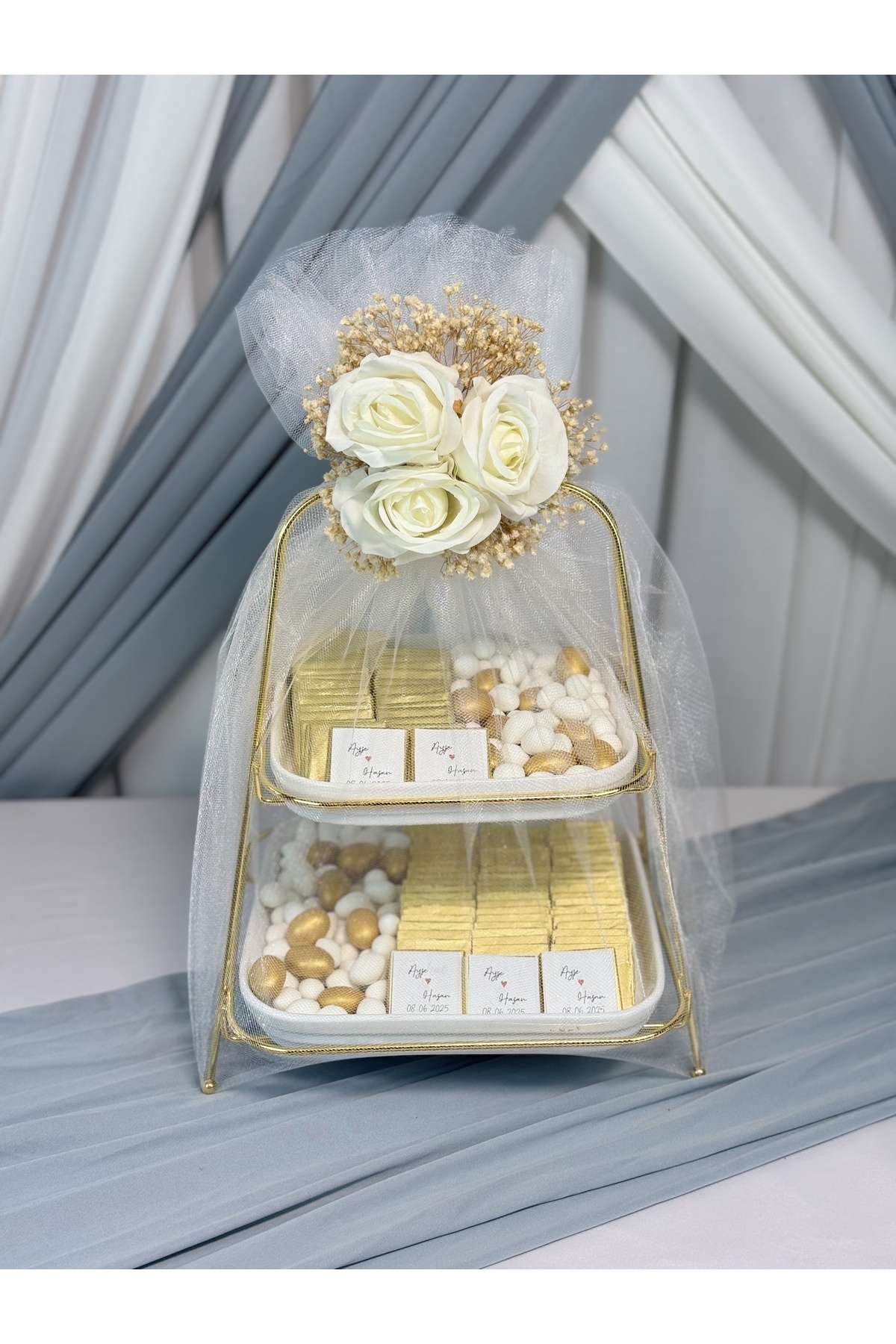 Hayatınızın en özel “evet”lerinden biri için hazırlıklara başlarken, her detayı zarafetle seçilmiş bir sunum arıyorsanız, bu özel tasarım tam size göre. Söz ve nişan törenlerinizde şıklığıyla göz kamaştıracak bu çift katlı sunumluk, sade şıklığın ve estetik huzurun birleşimidir.