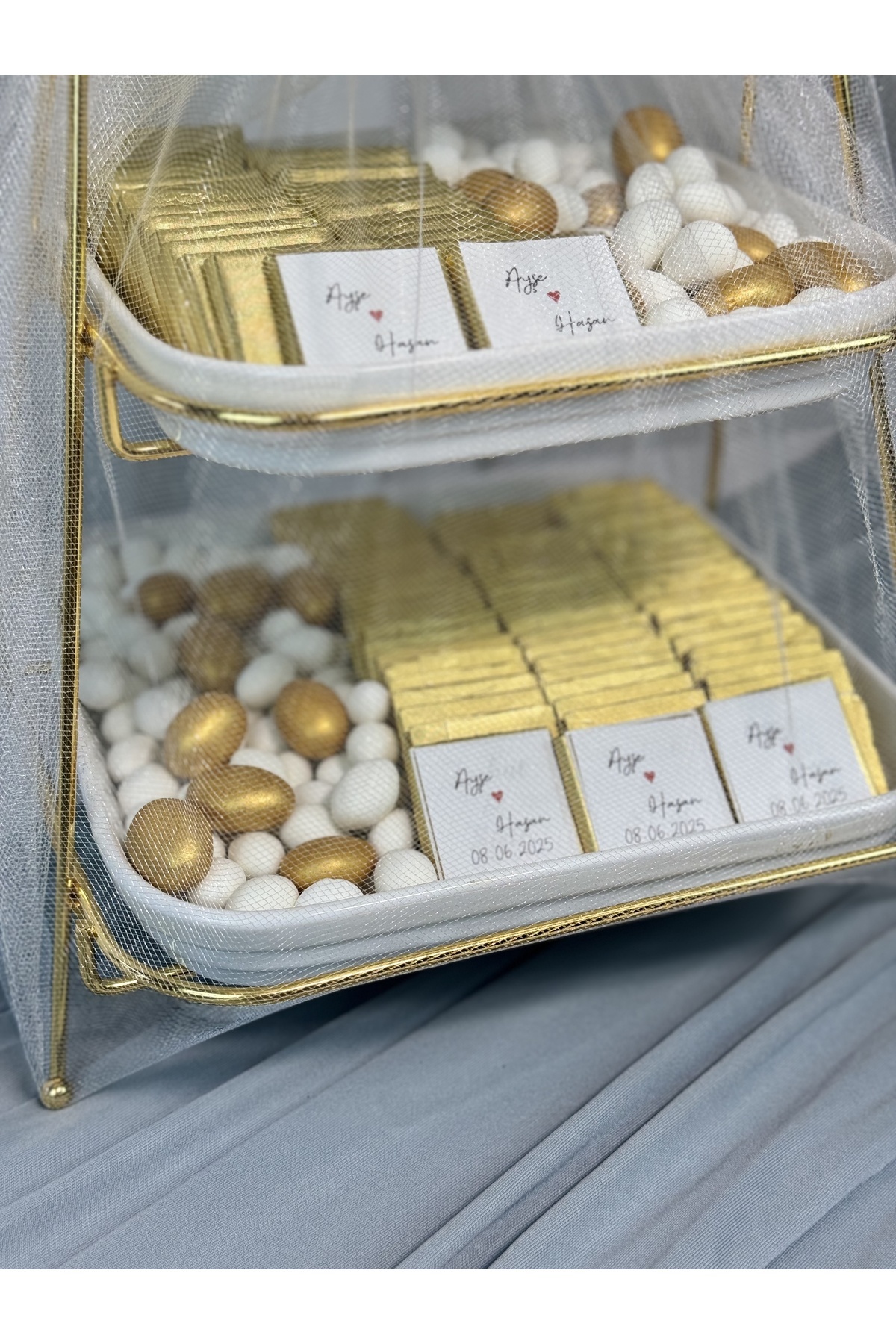 Çift katlı yapısı ve tül süslemeleriyle göz alıcı bir sunum sunar. İsteme çikolatası kutusu olarak kullanılabilecek bu özel parça, davetlilerinizin ilgisini çekecek ve uzun süre hafızalarda kalacak. Söz çikolatası süsleme detaylarıyla bütünleşmiş bu sunumluk, aynı zamanda dekoratif bir ürün olarak da kullanılabilir.