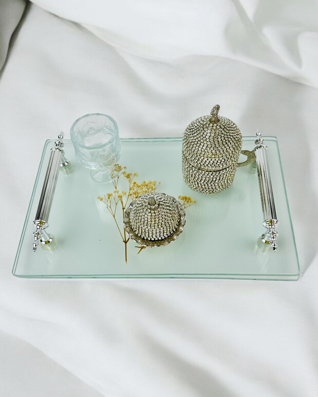 Ürün, nişan tepsisi modelleri, söz tepsisi süsleme, damat kahve tepsisi ve nişan kahve tepsisi süsleme gibi birçok ürünle kombinlenebilir. Bu kombinasyonlar sayesinde davetlerinize uyumlu bir konsept oluşturabilirsiniz.