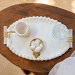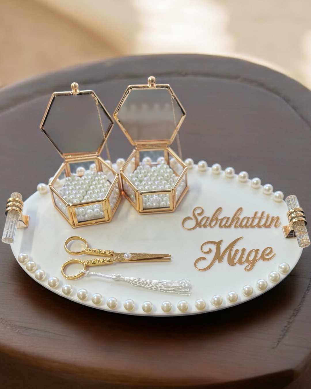 İnci Detaylarıyla Asil Bir Görünüm: İnci ve altın epoksi detayları, Sacred bir dokunuşla ürünleri klasik ve modern tasarımın mükemmel birleşimi haline getiriyor. Özellikle söz ve nişan tepsisi süsleme konusunda öne çıkan bu detaylar, zarafetiyle büyüler.