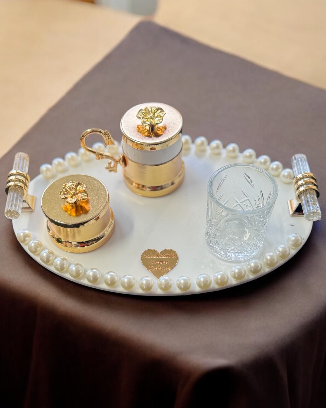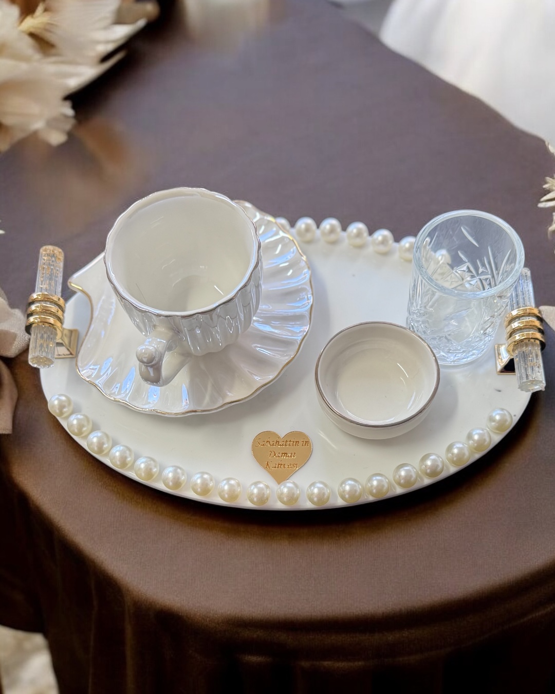 Kendi özel gününüzde ya da sevdiklerinize hediye olarak seçebileceğiniz bu ürün, sadece bir tepsi seti değil, aynı zamanda anılarınızı taşıyan bir parça olacak. Her detayında özen ve şıklığı hissedeceğiniz bu tasarım, unutulmaz bir sunum için idealdir.